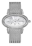 Valentino Women's V50SBQ9191S099 Signature Stainless Steel Diamond Oval WatchThe mother of pearl oval dial, with its slightly raised and curved surface, is dominated by valentino's signature v, enlarged for a stylistic effect. Attention to detail, precious materials and craftsmanship are evident in each part of this stainless steel timepiece. The dial is offset by an impressive bezel featuring brightly sparkling pavé diamonds. Its thick steel bracelet is crafted from traditional knitted metal technique and closes with a deployment clasp and push button.