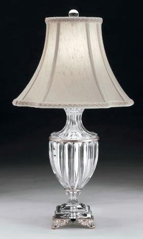 #Single Light Small Table Lamp from the Dynasty CollectionLamp of a thousand uses. ItÂ's diminutive, so itÂ'll fit anywhere. ItÂ's neutral, so it blends in anywhere. ItÂ's elegant enough for a formal decor, and simple enough for a sparely furnished room. The elaborate 8-sided shade has a shantung look and is trimmed with embossed Euro braiding. Crystal lovers will admire the lead crystal urn, clear crystal finial and solid lead crystal base. Baroque cast feet.Single light up lighting table lampFeaturing a shantung looking shade trimmed with embossed Euro braidingRequires 1 60w Medium base bulb (not included)Dimmer switch