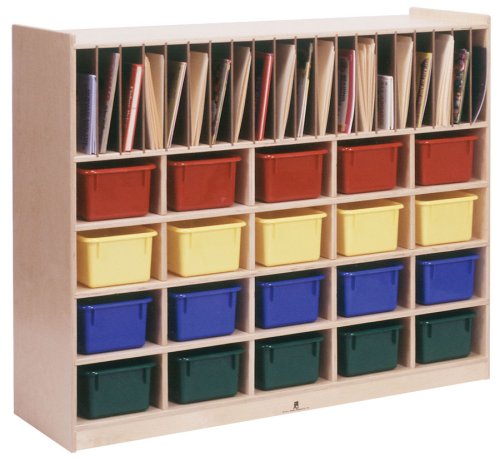 FeaturesStorage for 20 Plastic Trays with Clear Plastic Trays Included!Includes 20 Vertical Slots for Files, Books, Papers!Coated with a Non-Toxic Tough Clear Finish!Constructed of Tough 11-Ply Laminated Birch Wood!Lifetime Warranty Against Defects and Workmanship! Storage Center Cubby (With 20 Clear Plastic Trays & 20 Vertical Slots)?