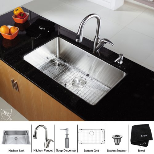 FeaturesAdd an elegant touch to your kitchen with unique Kraus kitchen comboKitchen SinkKraus kitchen sink boasts 16-gauge premium grade T-304 stainless steel constructionScratch-resistant commercial-grade premium satin finishPadded and Stone Guard undercoated insulation over a rubber pad reduces noise while sink is in useYou search for the best analysis